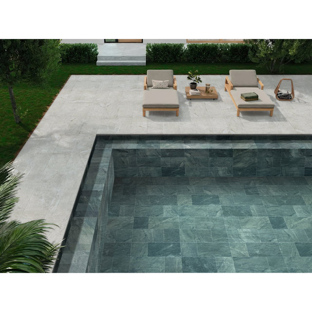Mejore su área de piscina con la elegancia y la seguridad de nuestro baldosas de piscina antideslizantes P4 Bali Stone Green P4.