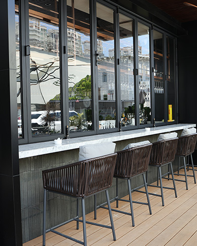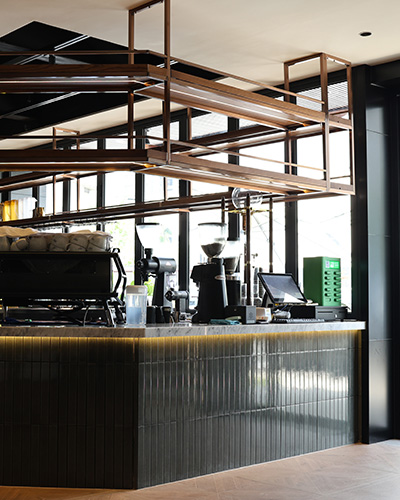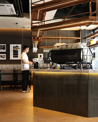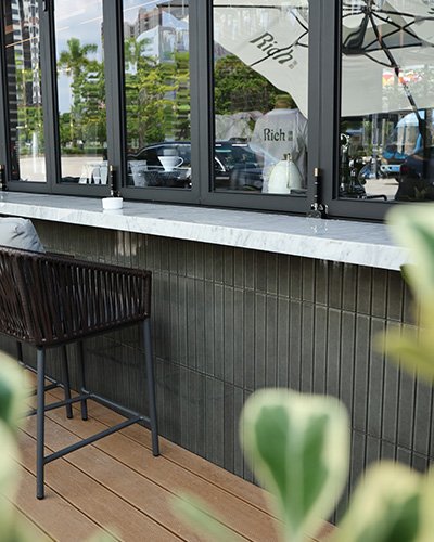 Este proyecto, ubicado en la bulliciosa ciudad de Shanghai, cuenta con una cafetería elegante que utilizó el mosaico de decoración Concord - CC35 para el área de mostrador y los espacios de comedor interiores y al aire libre. El suave tono verde gris de la teja de decoración transformada del horno trae un aire de elegancia y misterio, creando una atmósfera lujosa. Su forma alargada y sus líneas limpias y simétricas mejoran el atractivo visual, ofreciendo una estética refinada y equilibrada.