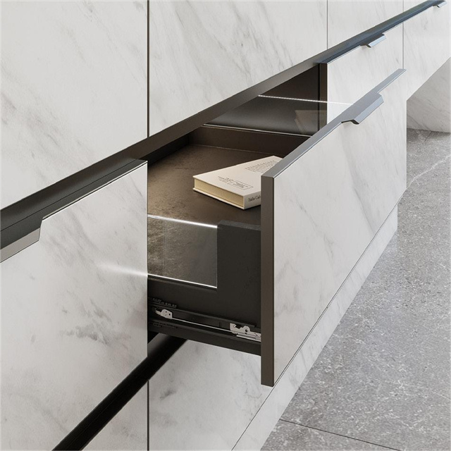 La textura de los paneles de gabinetes y guardarropas de piedra sinterizada es relativamente dura, por lo que tiene una gran estabilidad y no se deforma.El panel no absorbe la humedad, se ve menos afectado por la temperatura y la ropa no genera bacterias.Es resistente a la deformación por flexión, calidad estable y vida útil más larga.También es verdaderamente cero formaldehído, protección del medio ambiente y no causará daños a su salud ni a usted ni a su familia.