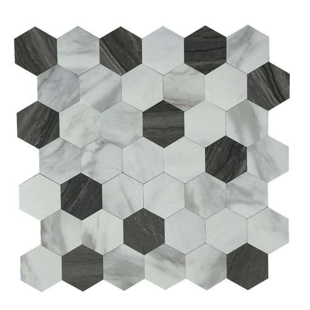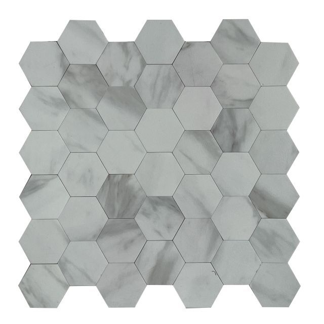 Miscela Peel & Stick Mosaics, un tipo de mosaico innovador hecho por material reciclable llamado PVC o LVT compuesto, 100% resistente al agua, a prueba de fuego, mármol realista o patrón de madera. Aficionando con un sistema premium de cáscara y palo, 10 años, su tiempo de servicio puede durar 10 años, si tiene una casa renovada, Miscela Mosaic puede ayudarlo a ahorrar más tiempo y costo.