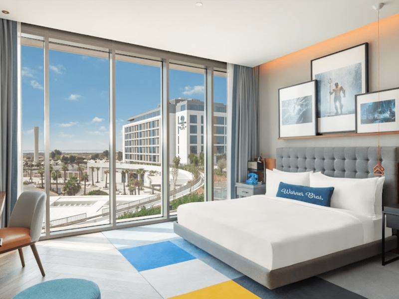 El WB Abu Dhabi es un hotel de siete pisos en Abu Dhabi para acompañar a Warner Bros. World Abu Dhabi. El hotel tiene 156 habitaciones y 156 apartamentos con servicios, con todas las habitaciones con el tema de las propiedades de Warner Bros. como Looney Tunes y DC Comics.